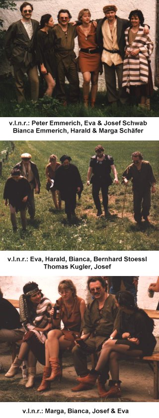 Der weitere Nachmittag verlief dann mit allerlei Wettkämpfen, Getratsche und Besprechungen über einen künftigen Fantasykalender. Viele legten sich in die Sonne, einige bekamen einen Sonnenbrand (wie ich) oder beteiligten sich am Schlußdungeon vom Marsch (wie Harald). Irgendwann wurde dann ein Gruppenfoto der anwesenden Follower gemacht und dann war es auch wieder soweit: wir hatten Hunger. Das Abendessen verlief in gemütlicher Runde in einem Lokal, wo sich dann auch herausstellte, daß es am Abend ein "Gerichtsverfahren" gegen die Bösewichte geben sollte, die den armen Tirson gefesselt und geschwärzt hatten.