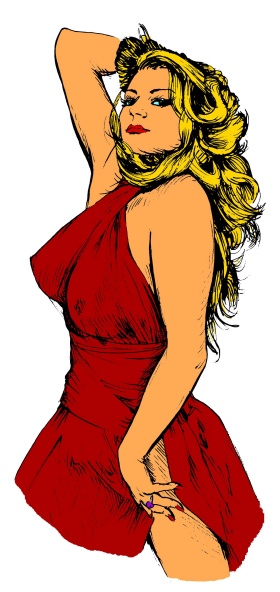 Sam bemerkte, dass er auf einem gepflasterten Gehsteig lag, als er die Augen aufschlug. Vor sich sah er ein Paar schlanker, wohlgeformter Beine, die in kleinen, schwarzen Pumps endeten. Er hob den Kopf, sah an einem roten Kleid, in dem eine Traumfigur steckte, hoch und blickte in ein wunderschönes Gesicht, das von blonden Locken umrahmt wurde.